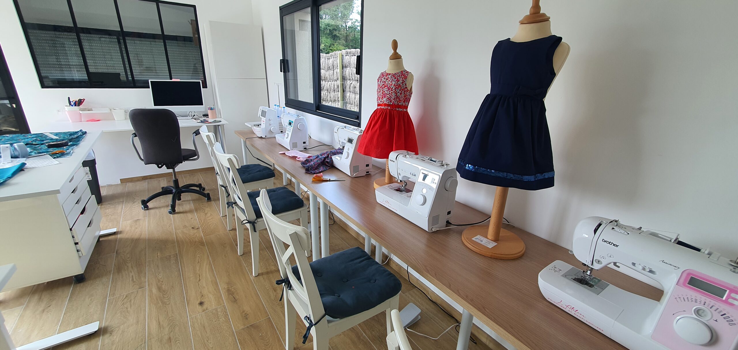 Notre atelier est équipé de machines à coudre neuves Brother®, des surjeteuses Bernina®, une piqueuse professionnelle Texi®, une brodeuse Janone®. Pour l’ensemble de nos cours, le matériel ainsi que le tissu et accessoires sont fournis. Pour les ateliers « libres », vous apportez votre tissu, votre patron et accessoires pour réaliser votre projet